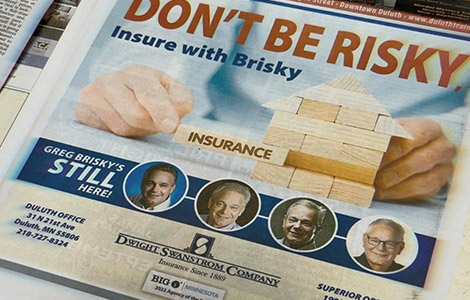 Please note in the future you will be receiving insurance paperwork with the updated name, “Dwight Swanstrom Company.” Please continue making payments or calling for policy servicing as usual with the same number of 715-392-5177 and address of 1908 Iowa Avenue Superior, WI 54880.